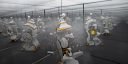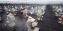 In this photographic series, Oefner puts again our perception of time and reality at the centre point of his research. The images show a distinct moment in time, the breaking of a clock, the shattering of a vase, mirrored infinitely towards the horizon.